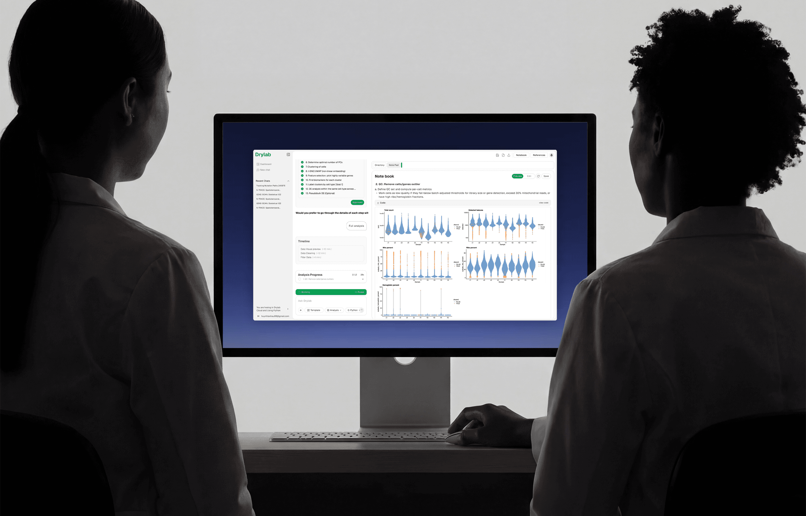 Co-create analysis with Drylab and have the code simultaneously output results with you.