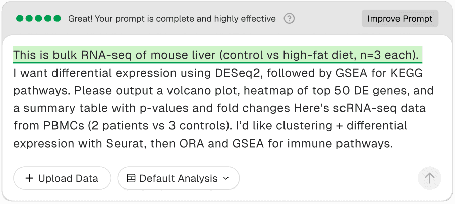 Drylab is trained on biological datasets, experimental data, and real scientific workflows. This enables a deeper understanding of biological concepts and more effective multi-modal analysis.