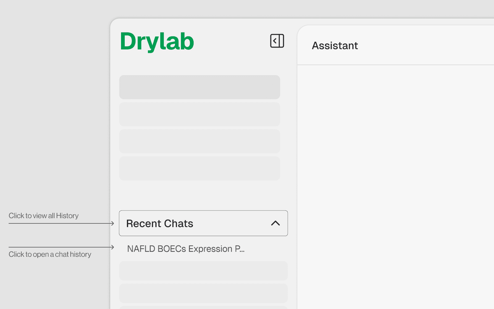 History is a record of every analysis session you have run — organized by project. Each entry includes the conversation, the notebook, all outputs, and the files generated during that session.