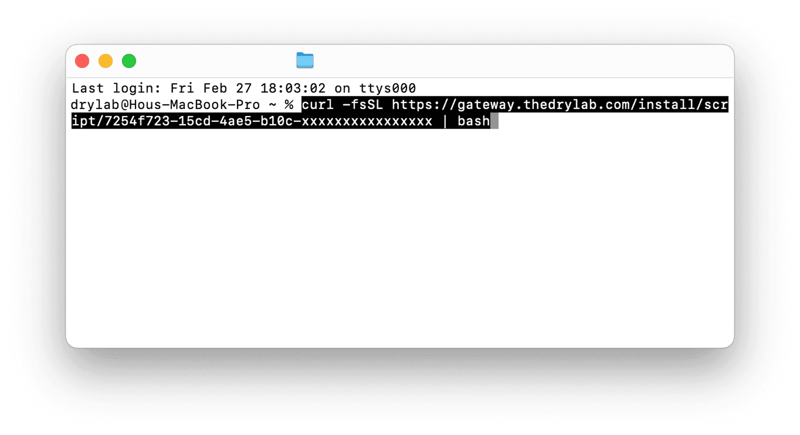 The settings panel provides a one-line install command. Copy and run it in your local terminal: