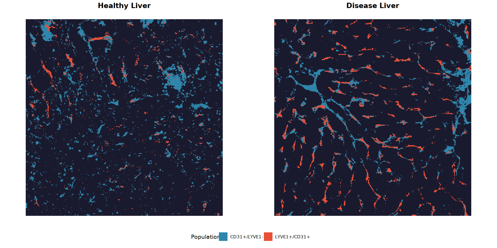 The preferential expansion of LYVE1+/CD31+ endothelium in disease liver is consistent with liver sinusoidal endothelial cell (LSEC) remodeling commonly observed in hepatic pathologies such as fibrosis or chronic inflammation